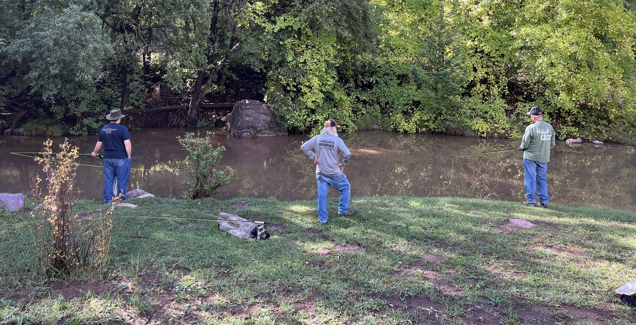 Flyfishing September 2025 On Tuesday, September 2nd, our Heroes Rising Outdoors Fall Fly Fishing Class kicked off! We’re honored to have 8 veterans participating this season. To start the day, each veteran introduced themselves, shared their branch of service, and a little about their background. Our incredible instructors, Don T. and Earlene S., led the session by covering the basics of fly fishing. From the essential equipment and safety gear, to reading a creek, understanding hatches, and identifying the best spots to find trout. Each participant had the opportunity to ask questions and deepen their knowledge. Next Tuesday, the class will continue as our veterans learn important fishing knots and get hands-on practice tying them! Tuesday, September 16 our veterans met at Pioneer Park to learn the different types of casts for fly fishing. Each person received their gear, and were taught the proper way to assemble the fly rod and thread the line. We then took each veteran to the grassy area and had them start with the pick up and lay down cast. Once we felt they were getting that cast well enough, we taught them the roll cast, which is what we will be using most at Christopher Creek because of overhanging limbs, etc. After casting on the grass, we had them move to the pond to practice casting on water. The resistance of the water makes it easier. Each veteran had a piece of yarn tied to the end of the line to simulate a fly. By the end of the day, the casts were looking really good, and next week we will have one more casting session before hitting the creek for our trip. On Friday, September 26-28 the Heroes Rising Outdoors held its fly fishing camp at the R Bar C Scout Ranch outside of Payson. Friday the rain was falling heavy most of the afternoon and evening, so we all stayed in the cabin until our steak supper was done. Saturday the weather was perfect for fishing, but the muddy creeks made it a challenge. We tried several different creeks and were able to catch a few fish but not as many as usual. Each veteran had a great time being out on the creeks, even if the fish weren’t biting as much. The great food prepared by our camp cooks made us forget the days struggle on the streams, especially the fish fry for supper and the card games at night.